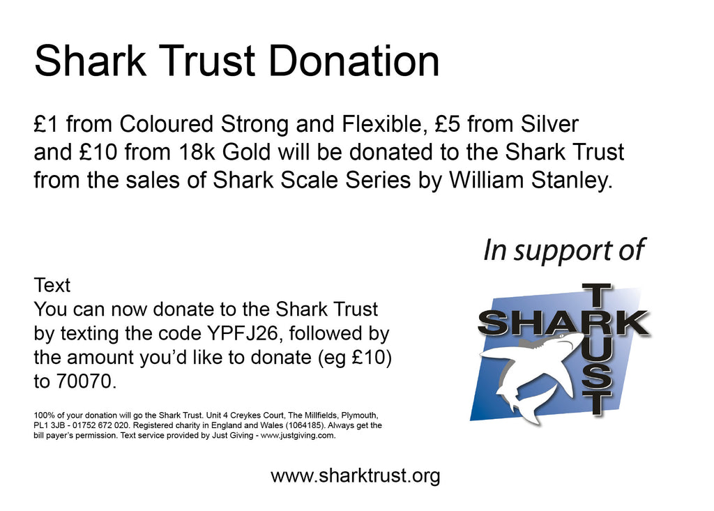 £1 FROM EACH SALE OF SHARK SCALE JEWELLERY SERIES IN COLOURED STRONG AND FLEXIBLE WILL BE DONATED TO THE SHARK TRUST.