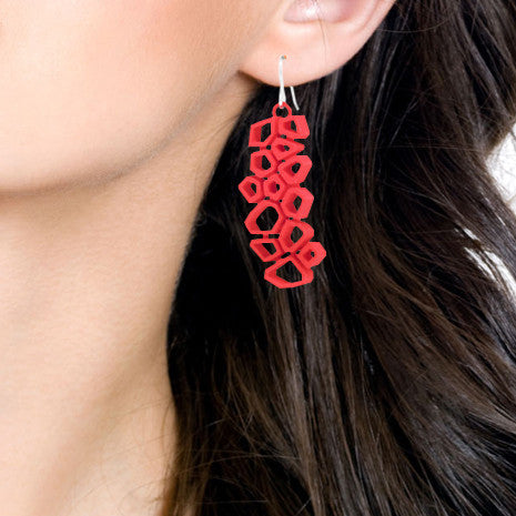 From the microarchitecture of our bones to leaves, dragonfly wings, turtles and giraffes, the voronoi pattern is found throughout many different parts of the natural world. This intricate design is 3D printed in strong and flexible nylon. The earrings are then dyed and once cleaned and polished these earrings exhibit the beauty and structural form of an often unseen part of our natural world.