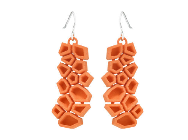 From the microarchitecture of our bones to leaves, dragonfly wings, turtles and giraffes, the voronoi pattern is found throughout many different parts of the natural world. This intricate design is 3D printed in strong and flexible nylon. The earrings are then dyed and once cleaned and polished these earrings exhibit the beauty and structural form of an often unseen part of our natural world.