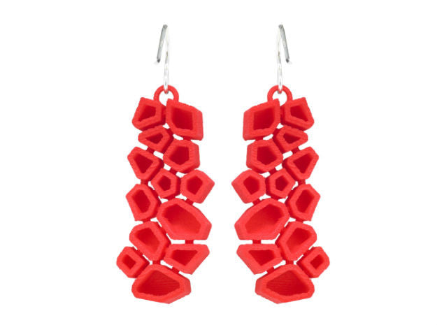 From the microarchitecture of our bones to leaves, dragonfly wings, turtles and giraffes, the voronoi pattern is found throughout many different parts of the natural world. This intricate design is 3D printed in strong and flexible nylon. The earrings are then dyed and once cleaned and polished these earrings exhibit the beauty and structural form of an often unseen part of our natural world.